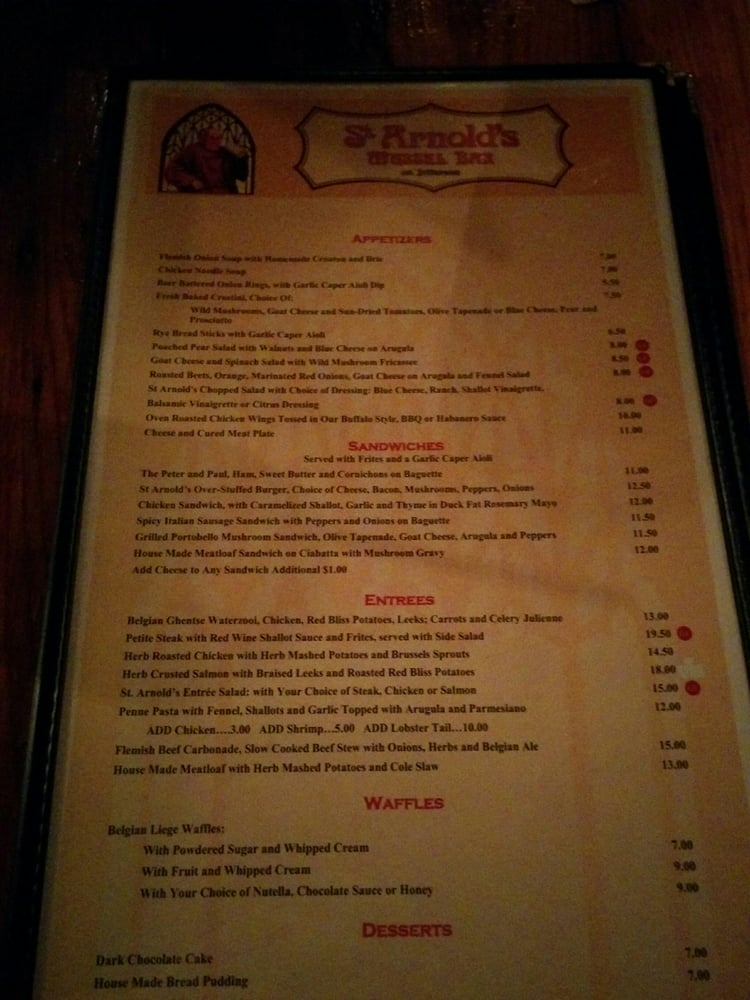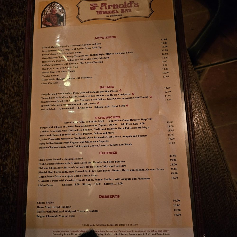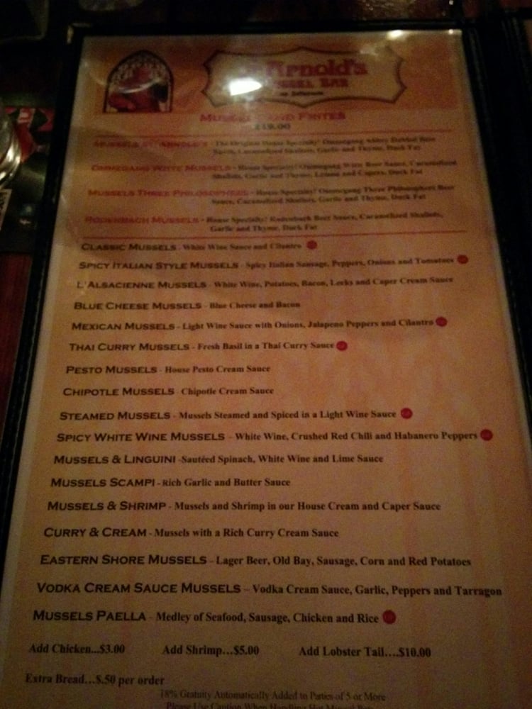 St. Arnold's Mussel Bar in Washington DC offers a wide range of American dishes with a focus on mussels and beer selections. The menu features options like beer-battered onion rings, chicken wings, and various mussel pots with different sauces. Customers rave about the flavorful dishes, particularly the mussels served in hot metal pots and the crispy beer-battered onion rings. The bar also boasts an extensive drink menu, including Belgian and European beers on tap and in bottles. The cozy and down-to-earth atmosphere, along with attentive service, add to the overall dining experience. Whether you're a fan of traditional recipes or more creative interpretations, St. Arnold's Mussel Bar is a must-visit for those looking for a delicious meal and exceptional beer selection.
